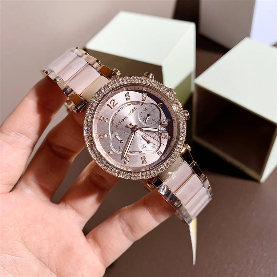 Original single MK-5896 (bare pink) rose gold, original single counter quality, support for comparison, size: dial diameter 39mm, thickness 10mm edk