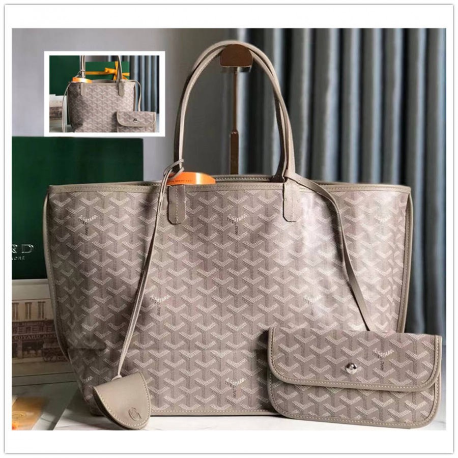 [Goyard] New exclusive edition, Reversible Anjou double-sided tote bag, new color milk tea gray, using imported matching calf leather for the top layer ➕ Customized Goyardine rain dew cotton and linen, exquisite, compact and lightweight, with an absolutely perfect inner partition. It can be used in one package for both, comes with a zero wallet, and comes with a decorative sealing clip! Model: GY020660, GKK HEK