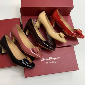 Ferragamo / Ferragamo VARA bow square head single shoes high heels serial number CJK Salvatore Fer..