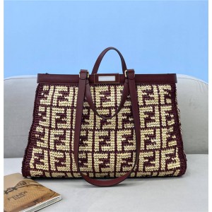 PEEKABOO X-TOTE FF raffia woven shopping bag 8BH374 serial number FENDI PEEKABOO X-TOTE upgraded v..