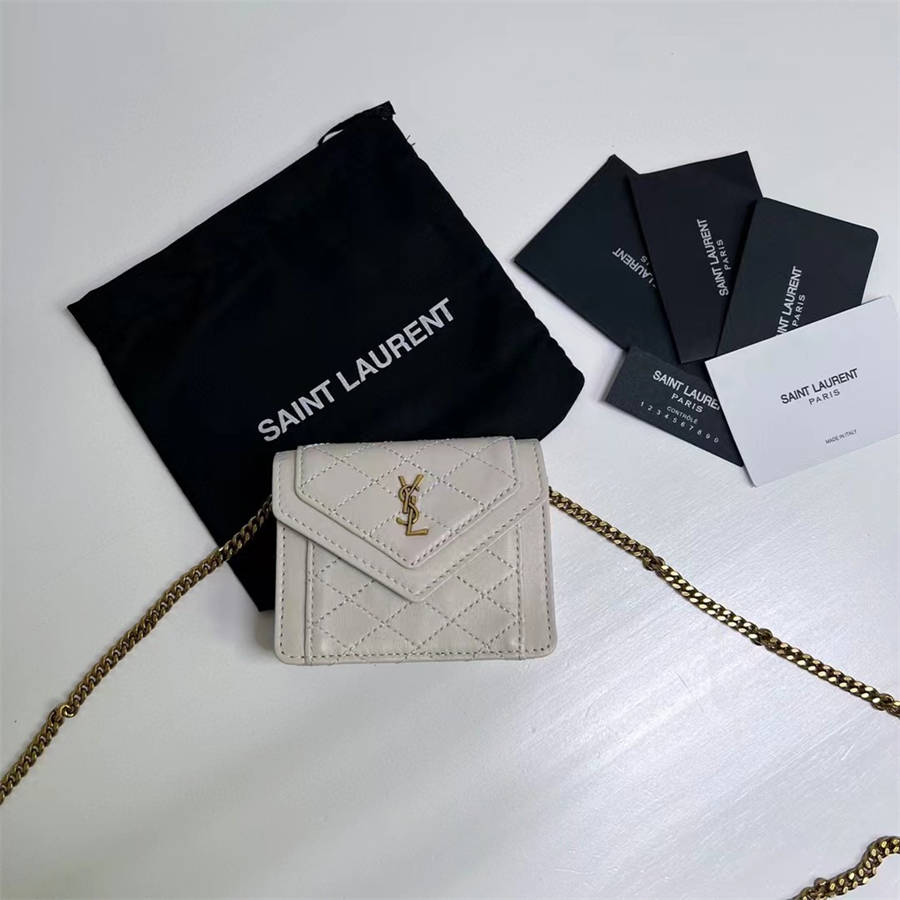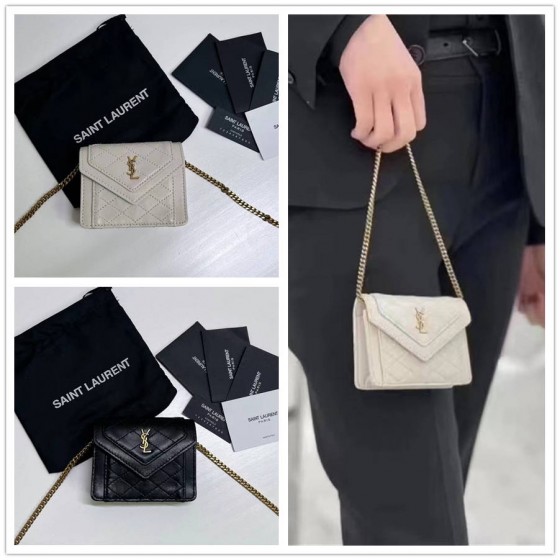 EFK Mini GABY Flip Mini Handbag, adorned with interwoven metal YSL letter logo and square pattern quilted bag stitching, paired with detachable chain shoulder straps, suitable for shoulder or crossbody, made of sheepskin leather! Bronze colored metal accessories with snap closure design