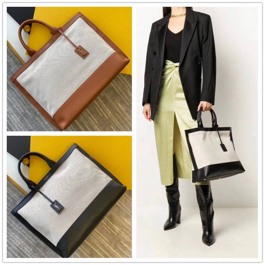 The latest tote bag SHOPPING TAG is made of imported cowhide with exclusive custom fabric paired with a tubular leather handle, and a detachable leather label adorned with a metal Y.SL letter logo. Bronze colored metal accessories with satin lining and magnetic buckle closure design. Interior: One main compartment, one large zipper pocket, and one flat pocket with large capacity. The bottom is equipped with five metal legs, which is practical and wear-resistant