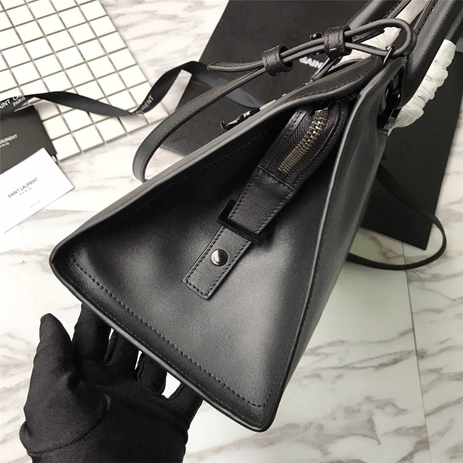 YSl Saint Laurent Tube Handle and Leather Wrapped Key Ring, YSL Logo Interlocking Metal Front Buckle, Removable Shoulder Strap, Top Imported Original South African Leather Size: 30.22.15 bkfk