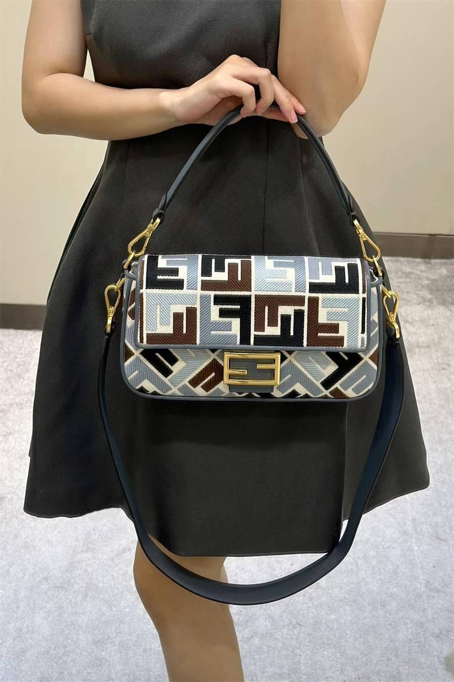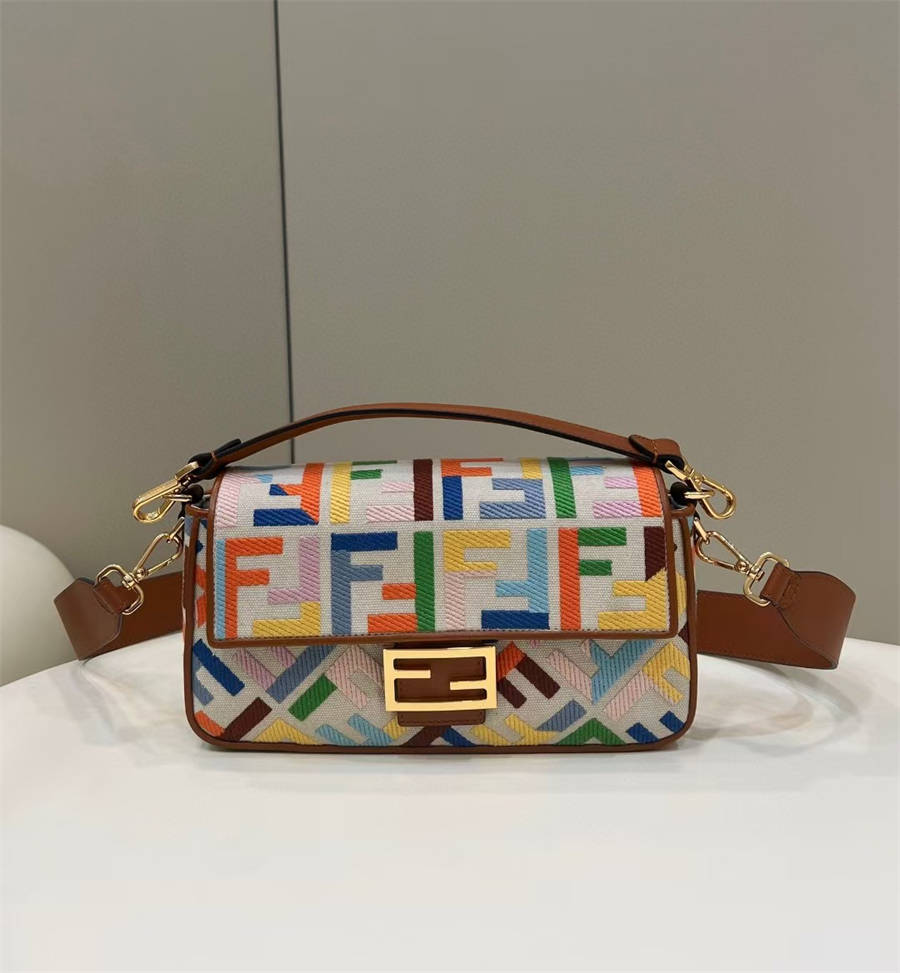 8BR600 Baguette FF Colorful Embroidered Canvas Medium French Stick Bag 0159