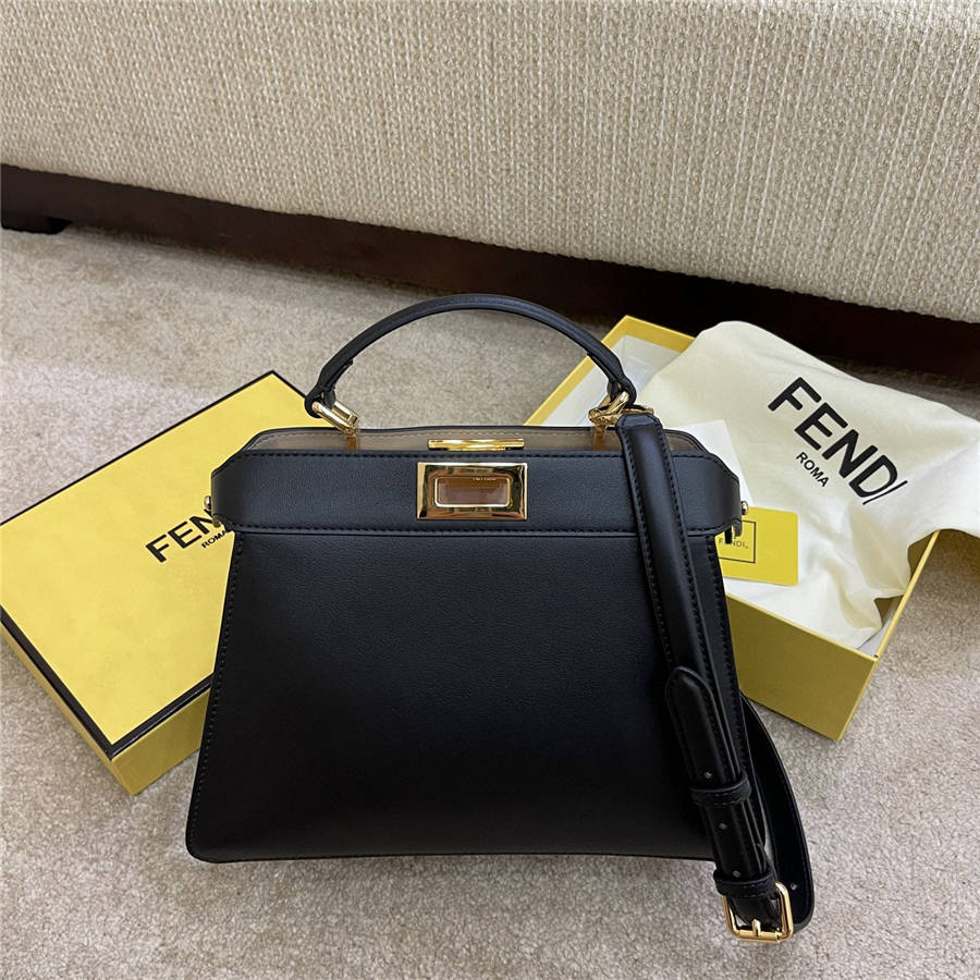 FE ND1 BFKK peekaboo I see u handbag brand new peekaboo I see u just to see your different side, the new shape continues the classic peekaboo trapezoidal outline and square twist lock design, the side adds an organ design, full of retro feeling small 5328 Size 27x21x9.5cm