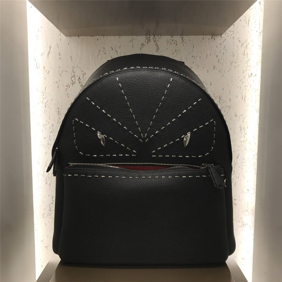 The BBFKBag Bugs series of black backpacks are made of imported Italian Togo lychee leather unique hardware and hand-threaded to surpass the limitations of styles, making the traditional backpacks also very fashionable; the workmanship is tedious but not long-winded, and it is full of freshness that breaks the stereotypes. Let fashion also permeate wit and funny. 34cm. 8911