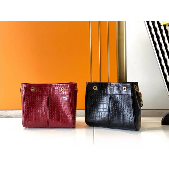 Top GIK 2021 new CLAUDE crocodile embossed leather shopping bag 640281 VINYLE bright red shopping bag, embossed with Saint Laurent PARIS ➕ suede lining, detachable chain and leather shoulder strap ➕ bronze metal accessories, magnetic snap closure design inside :One main compartment, one zipper bag and one flat bag➕ strap length: 27 cm/46.5 cm, four metal feet size: 20 X 28 CM with full package