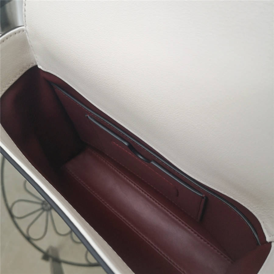 Idk Eden small solid color Givenchy's latest Eden handbag is made of smooth calfskin, with flip, graphic open seam details, satin gold metal double g magnetic buckle, leather sashes on both sides, and a top handle for carrying. Adjustable and detachable thin shoulder strap, which can be worn on the Crossbody. Gold Givenchy Paris print on the front. Inside is a large main compartment and a flat pocket for business cards. The back of the handbag is provided with a flat outside pocket. Eggplant purple imitation leather lining. Size: 19 * 14 * 5.5cm