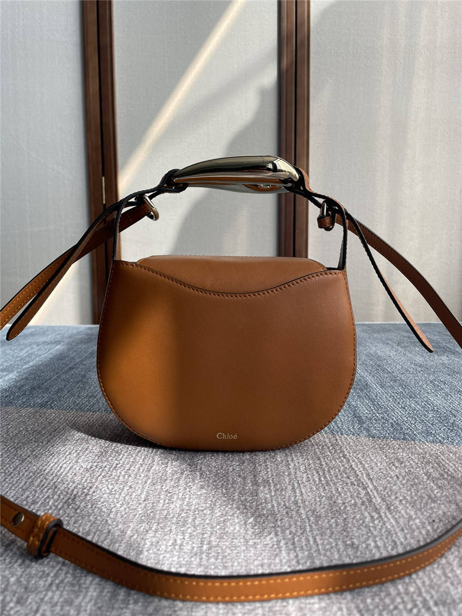Chloé 2021 spring and summer new Kiss series handbags, jewelry-inspired lip-shaped metal handles. Inspired by the brand's classic Trudie series of lip-shaped jewelry, the smooth and clean metal ring handle resembles a lightly opened vermilion lip, and an enlarged lip-shaped jewelry turns into the handle of a bag. The metallic luster exudes exquisite style and smooth curved lines. It looks like slightly opened lips, so it gets the title of "Kiss" lip bag. The main body of the bag is made of calfskin. The small and round Hobo bag is exquisite and cute. The bag is equipped with a long shoulder strap, and the shoulder or hand is full of modern flavor. GFK model .6050. Size: 20*26*8cm