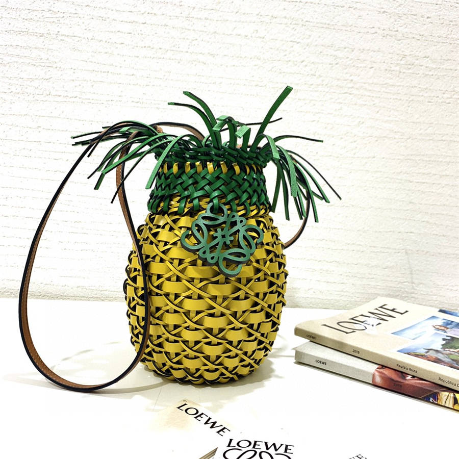 BCIK LO^_^WE Paula’s Ibiza summer limited pineapple bag is on the shelf with multi-color leather strips and all hand-woven, decorated with tassels and brand ornaments on the top, exquisite and fashionable. It is a fashionable item to match. It can be carried on the shoulder or cross-body, and the shoulder strap is detachable and adjustable. In addition to being cute and well-behaved, you can also install mobile phones, tissues, lipsticks, powder, etc. (the production takes a long time) HKD ZP 16450, style number 89098, size 22.5*10*10 (box gift bag)