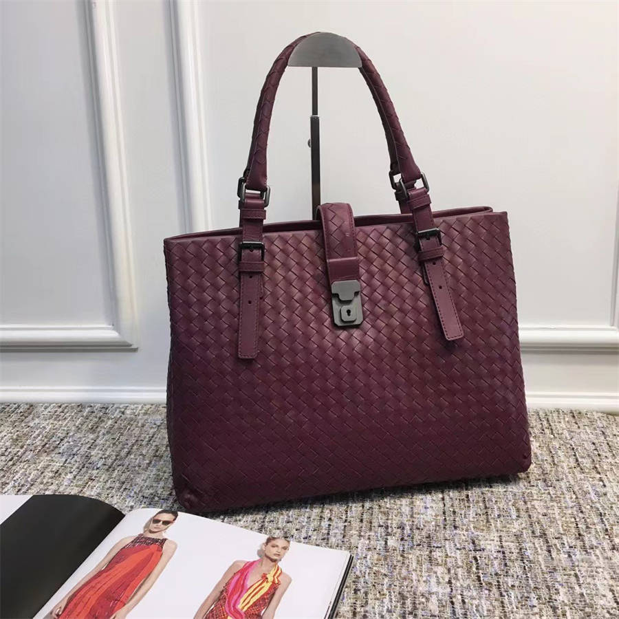 Bv Classic Roman Bag Large~Made of top grade fetal cowhide, hand woven, densely and orderly woven. The bag has a personalized three pocket gun color lock buckle, a portable style combination, and an elegant and elegant style! 7453 fetal cowhide black size38cm