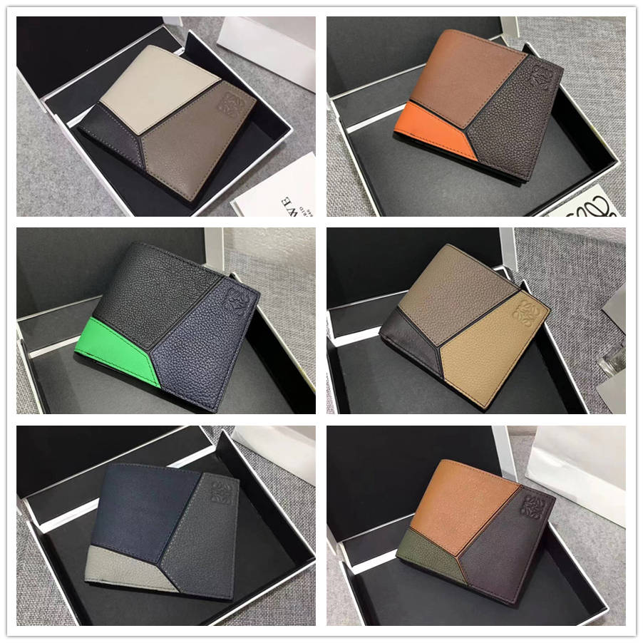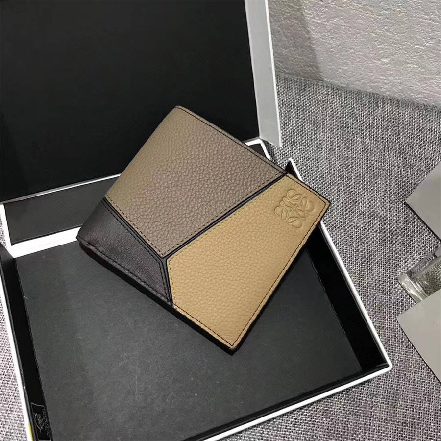 The DGK Men's Puzzle bifold wallet series color matching short clip is shipped with pearl ground calf leather stitching, featuring 8 credit card slots and 2 pockets. Model number 3582, size 11.5 * 10