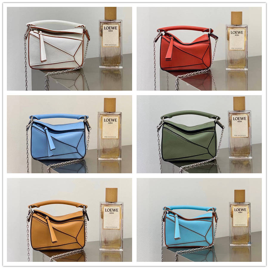 Nano cute to foul~The new ultra mini geometric bag Nano Puzzle teaches you the correct way to open cute! It still retains all details such as the folding and splicing structure pocket handle, and adds a slim silver thin chain shoulder strap to make the overall appearance more exquisite. In addition to being cute, Ta can also hold lipstick, powder, card bag, keys, and so on to meet the daily needs of small bag controllers. It's easy to carry and cross carry. It's no wonder that half of the female stars in the entertainment circle are carrying Nano Puzzle to absorb powder! Size: 13 * 8.5 * 5.5cm66006