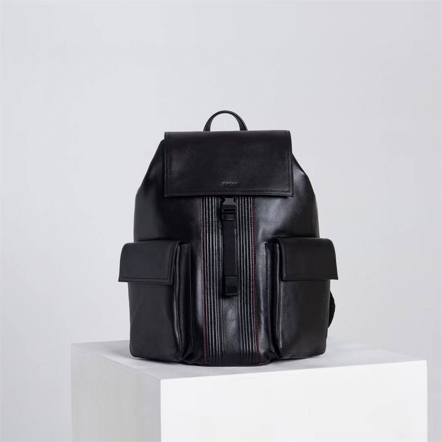 Atlas Abner Men's Black Leather Backpack number Bally's latest Abner collection men's black leather backpack The Atlas collection aims to meet the needs of business and casual attire, with each style's core being a reinterpretation of Bally Stripe. The Abner black scratch resistant waterproof leather backpack is equipped with two front pockets and magnetic buckles, with an orderly internal structure and multiple card slots, flat pockets, and zippered pockets. The central triangular ring helps the shoulder pad adapt to the wearer's back, while the padded back panel further enhances comfort. The hidden back zipper pocket makes it easy to access travel essentials. With the help of the back pull rod fixing strap, the backpack can be hung on the handle of the pull rod mounted chassis for easy carrying.