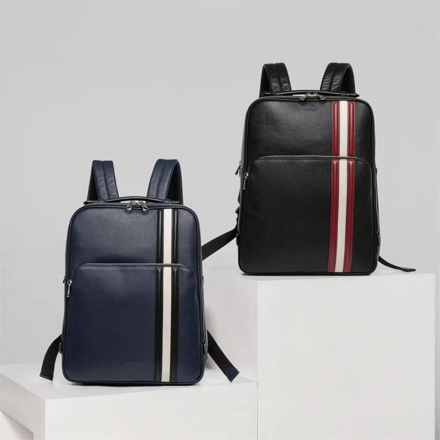 CORNEL Men's Litchi Pattern Cowhide Backpack number Purchasing Level BALLY/Bali Counter Latest Classic Stripe Original Order Quality Support Exclusive First Release Size: 33 * 40 * 10
