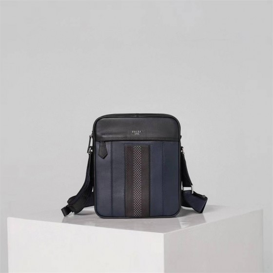 Highpoint series Holm men's crossbody bag number Bally's latest Holm series navy blue leather men's one shoulder crossbody casual bag! This Holm navy blue diagonal backpack comes from the Highpoint collection and is adorned with iconic eyelets Leather Bally Stripe and embossed Bally brand logo details. Both front and rear have zippers Pocket, easy to access items, and also equipped with a zippered pocket inside. Large capacity and reasonable space design, very practical! Black and blue contrasting design, low-key and fashionable! Can meet all daily needs! First choice for self use gift giving! Size: 21 * 25 * 7 (cm)