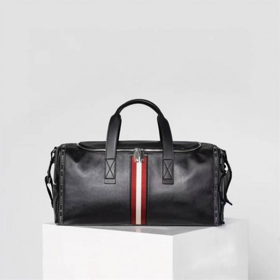This Weekender weekend travel and leisure bag is made of scratch resistant, waterproof, and dustproof top layer cowhide, which is exquisite! The front is adorned with Bally Stripe striped webbing, and the back is adorned with a hand sewn Switcherland leather logo! The top of the bag is equipped with a wrap around metal zipper that opens and closes! Top full leather two handed wristband, sturdy and durable! There is an adjustable and detachable shoulder strap on the outside! There is an external zipper pocket on one end of the side and an elastic band on the other end, making it easy to connect accessories! The interior is lined with 100% waterproof and dustproof Bally print! Comes with a zippered hidden pocket and two flat pockets! Super large capacity! Suitable for weekend leisure, long-distance travel, and daily fitness use! It can be used as a storage bag in the car trunk!