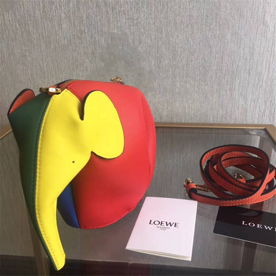 Loewe Elephant elephant bag, cute new color spelling, top original single, official website synchronization. This elephant bag shows super excellent craftsmanship. A few stitches will turn a piece of flat leather into a vivid elephant under the master's hands, soft fine-grain calfskin, full leather inside and outside, size: length 20 height 14 width 9 hhk