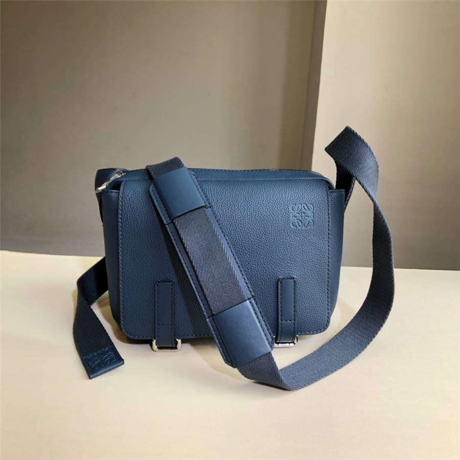 Lowe is a perfect complement to the classic messenger bag, and has a minimalist and exquisite couple silhouette. Double buckle flap closes. A new, compact size in a smart, practical style. Main features: Made of soft textured calf, strap shoulder straps, black hand-painted edges, cotton canvas lining with herringbone pattern, two internal slit compartments, four rows of stitched contours. Embossed toned crossword.