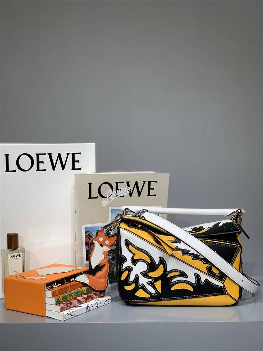 LOEWE women's bag new stitching blue and white porcelain gold jade puzzle small geometric bag