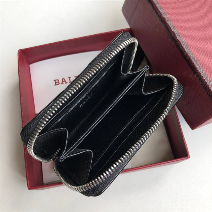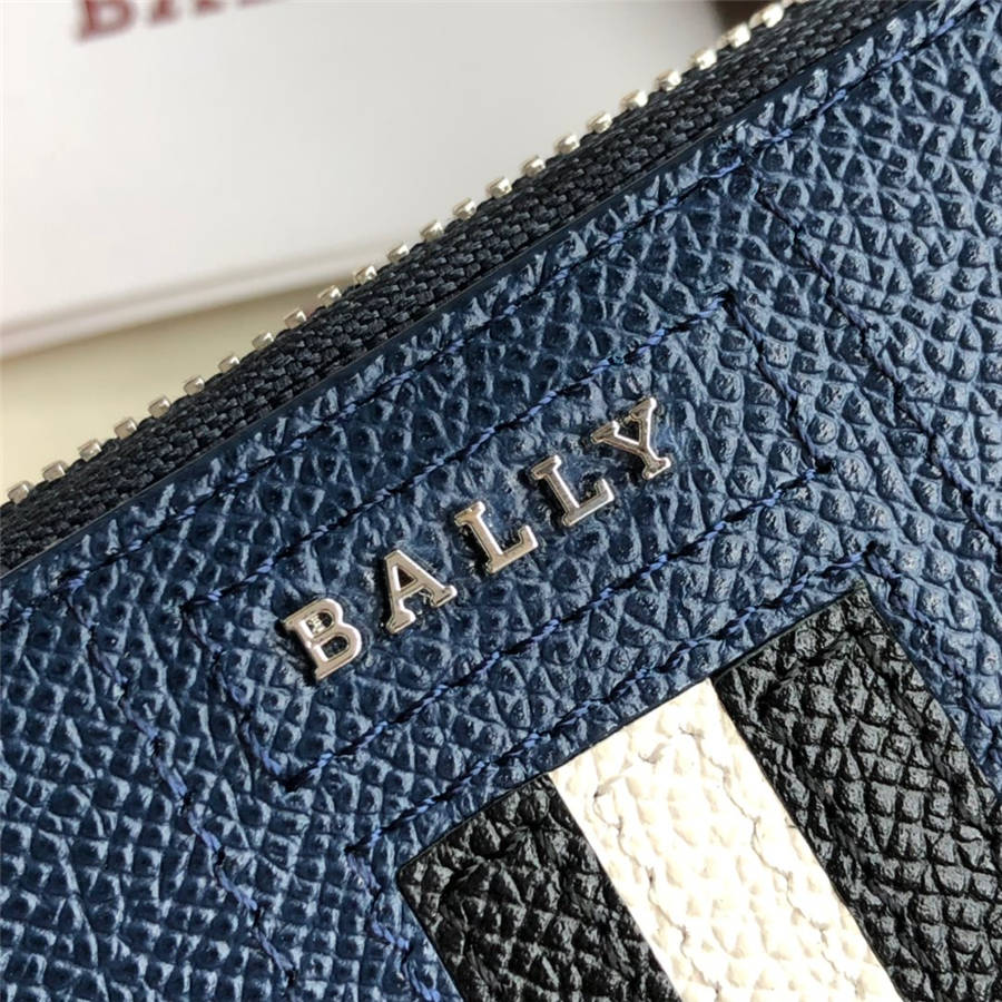BALLY / Bally counter new zipper business card case, coin purse classic stripes embossed cowhide original single quality support inspection 11CM