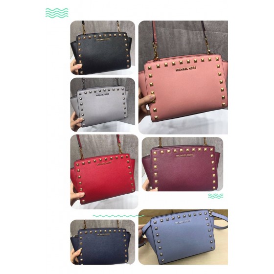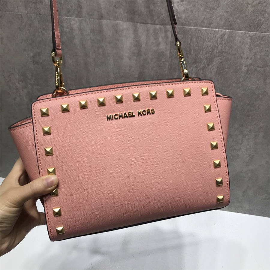 MK new female bag Selma rivet leather shoulder bag smiley face bag