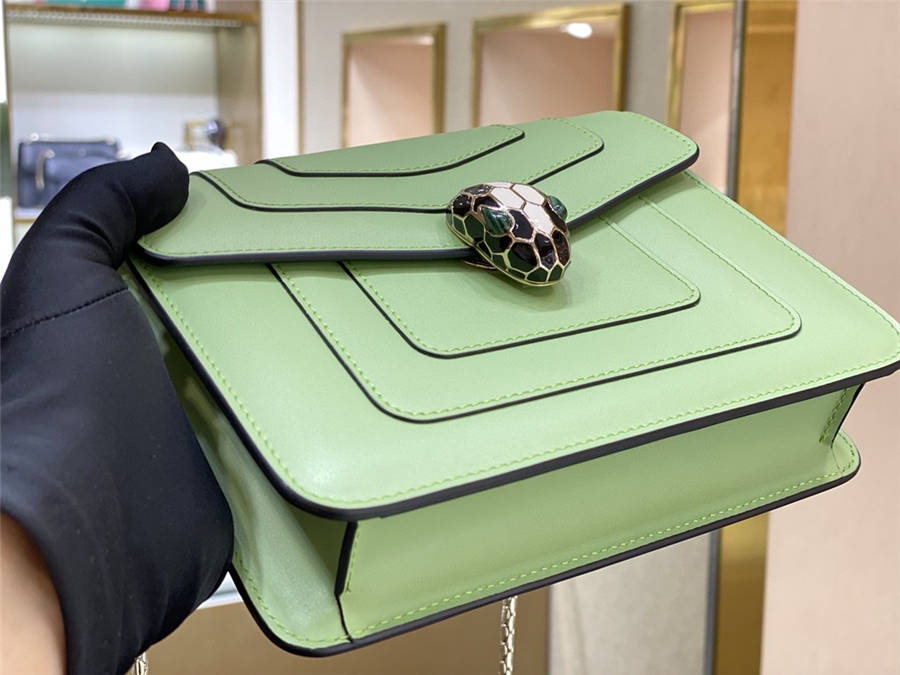 The "Serpenti Forever" crossbody bag is fashionable and changeable. This bag is made of mint calfskin, with light gold plated brass accessories, black and white agate enamel and green malachite sensual eyes, adjustable serpentine chain and leather Shoulder straps, easy to match with fashionable daily outfits. The latest internal grid method of organ bags that have always been popular! With counter packaging