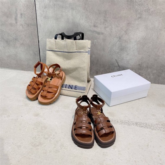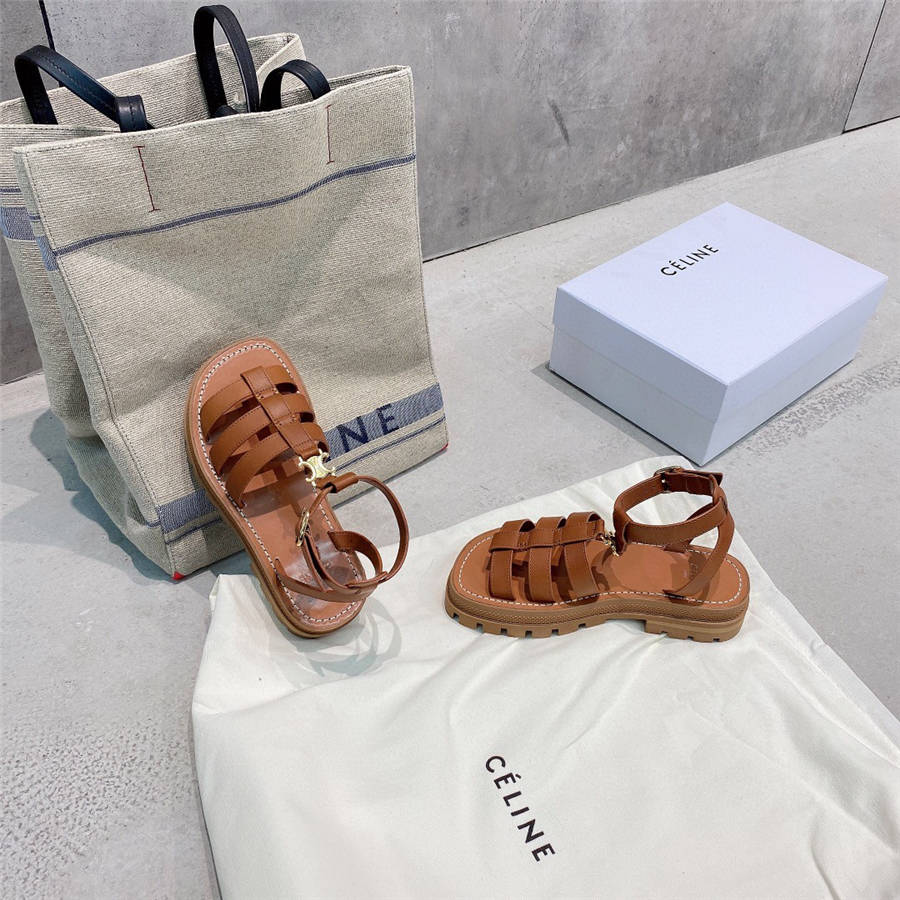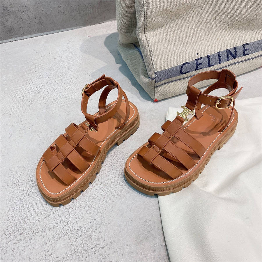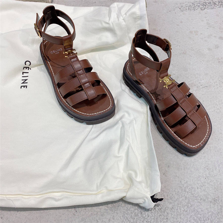 Celine/Celine Ladies CLEA TRIOMPHE vegetable tanned cow leather thick-heeled Roman sandals